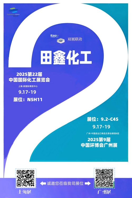 2025年9月17-19日上?;ふ购铜h(huán)博會廣州展同時(shí)開展,田鑫化工參展信息如下:
